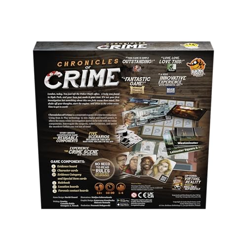 Chronicles of Crime merges traditional board game mechanics with an app-driven experience, taking players on exciting crime-solving adventures. Using QR codes, players can interact with characters, analyze evidence, and explore locations to uncover the truth.