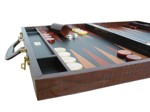 Gorgeous white croco-patterned leather table top backgammon set from Italy Made from highest quality Dollaro leather with immaculate inlays on the playing surface Superior craftsmanship Measures 26" x 31 1/2" x 1 3/4" (Extra Large) Includes high gloss mother of pearl stones, precision dice, and other playing pieces | Check Price | |